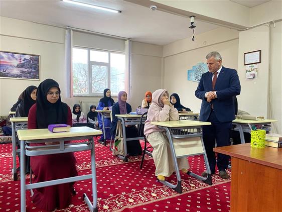 Ziyaret kapsamında İl Müftümüz Soylu, öğrencilerle yakından ilgilenerek hasbihal etti; kursun eğitim faaliyetleri hakkında bilgi aldı.